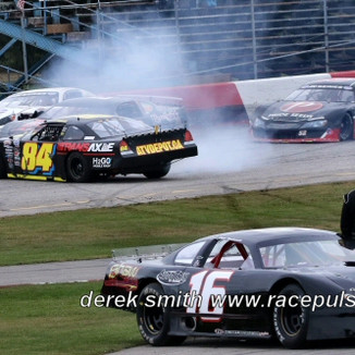 Kamrath got a good restart to maintain the advantage ahead of Grubb, Wilkie, DiBello, and Tiemersma. The second caution would come out on Lap 12, though, as McLean got loose and spun off of turn four, collecting Gallant and Verberne with him, as Brad Collison spun into the infield.